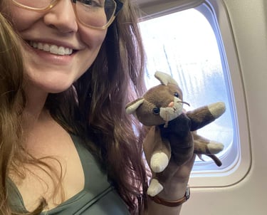 While the labeling has improved, there has been nothing like the sales guy we had in 2023. He got people trying our butters got Megan to that conference (see the excited hand?) On the right - Megan on the way to Boston with the kitty to whom she promised Selah she would show everything.